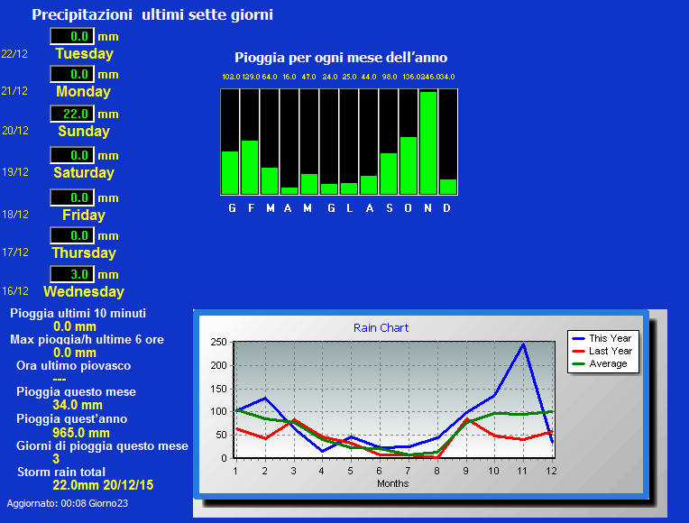 Massima pioggia per minuto    = 0.8 mm giorno 22 tempo 01:07
