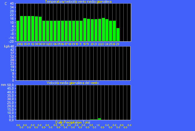 Il massimo windspeed          = 0.0 kmh from 0-0°( N ) giorno 30 tempo 00:06